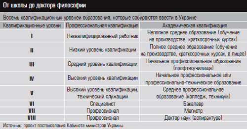 Украина, решив заимствовать этот опыт, втиснула западную двухступенчатую систему образования в старую схему: "специалист—кандидат—доктор наук". При этом у нас, в соответствии с украинским законодательством, профессионалом по-прежнему считается только тот, кто имеет полное высшее образование, и уточняется: "магистр или специалист".