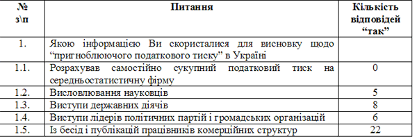 Таблиця 4. Результати опитування журналістів щодо податкового тиску на підприємницькі структури в Україні.