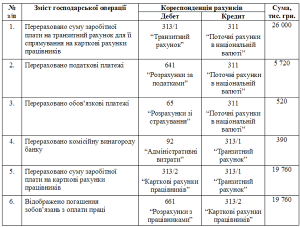 - платіжні доручення на переказ заробітної плати працівникам на їх карткові рахунки;