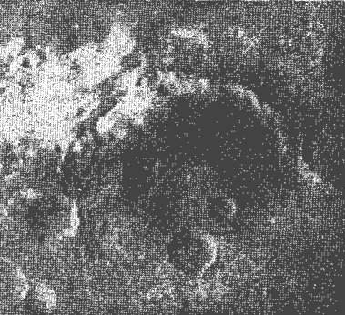 Рис. 1. Одна з фотографій Марса, одержаних "Марінером-4" з відстані 12,5 тис. км (розміри нижнього кратера зліва близько 12 мк).