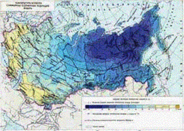 Карта розподілу сумарної сонячної радіації в січні місяці на території СНД дає інформацію про кількість енергії, що досягає поверхні ґрунту в найхолодніший період року.