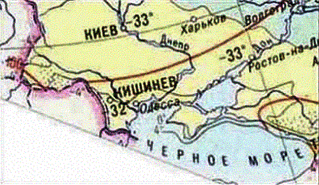 Червоними лініями з цифрами позначені ізолінії сумарної сонячної радіації в МДж/кв. м.