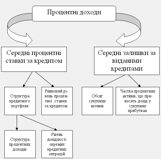 Здійснений аналіз процентних доходів показано на схемі 1: