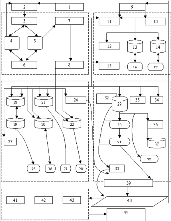 Блок 3. Призначений для збереження та управління фактологічними даними, правилами, цілями і коментарями за допомогою відповідних систем управління; СУБД, СУБН, СУБЦ, СУБК; для прийняття рішень у результаті функціонування модуля самовдосконалення – модуль аналізу і реорганізації знань; видачі інформації про можливі сфери використання систем на основі нових знань – модуль прогнозу.