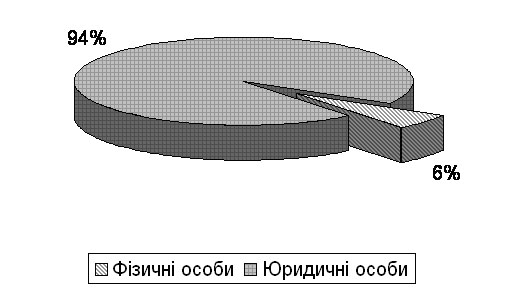 За даними рисунку 1 та таблиці 1, видно, що кредити які надають комерційні банки фізичним особам складають 6% від загального об`єму наданих кредитів (За станом 01.07. 98р.).