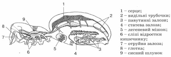 Мал. 1. Внутрішня будова павука-хрестовика.