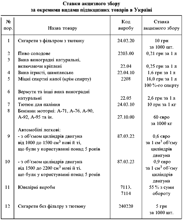 Крім оподатковуваного обороту для обчислення акцизного збору необхідні його ставки за підакцизними товарами.