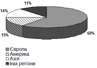 Як видно з діаграми, левова частка доходів Рейтер припадає саме на європейський регіон.