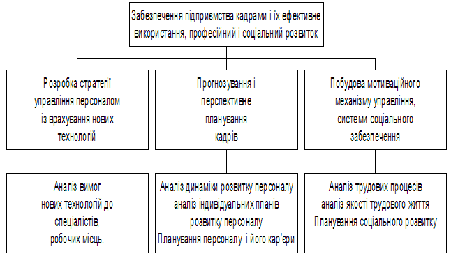 Узагальнюючи досвід зарубіжних підприємств можна сформувати головну ціль системи управління персоналом: забезпечення кадрами, їх ефективне використання, професійний і соціальний розвиток.