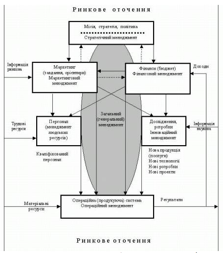 Рис.1. Зв'язки і взаємодія функцій управління в підприємництві