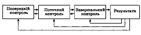 Рис. 7 Взаємозв'язки між попереднім, поточним та завершальним контролем.