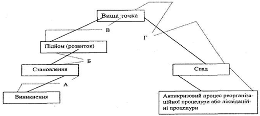 Кризові явища в розвитку підприємства тісно пов'язані з певним характером життєвого циклу підприємства (ЖЦП).