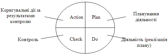 Модель Демінга описує діяльність по керуванню якістю, реалізовану на кожному етапі життєвого циклу підприємства (рис.2).