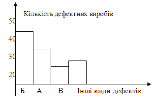 Ціль побудови стовпчикових діаграм є виявлення найбільш значимих причин проблем, що виникають у ході виробництва продукції.