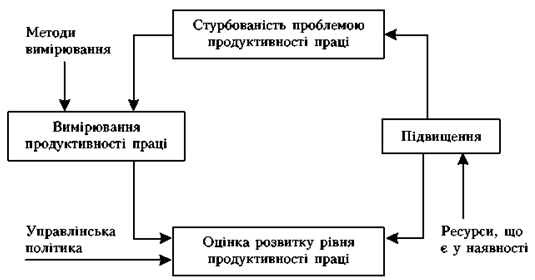 Рис. 1. Вимірювальні процедури в загальному циклі підвищення продуктивності праці.