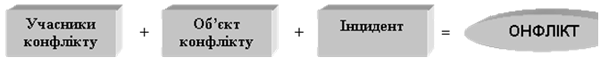 Конфліктна ситуація, що вимагає вирішення, передбачає існування кількох обов'язкових елементів: