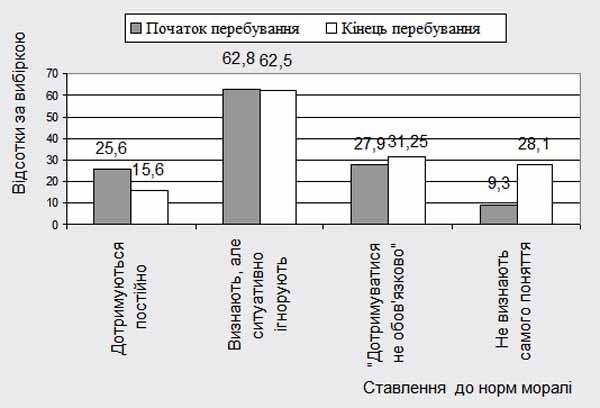 Рисунок 1. Динаміка ставлення засуджених до моральнісних норм під час перебування у карній установі.