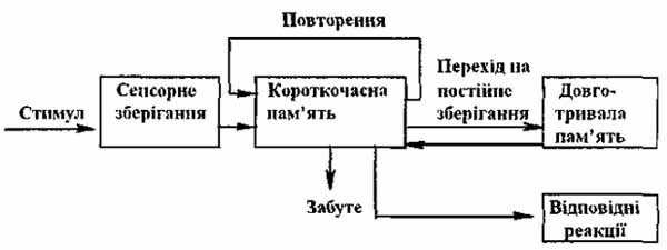 Модель переробки інформації породжує питання: які етапи проходить інформація при її обробці та в якому вигляді інформація репрезентується в розумі людини?